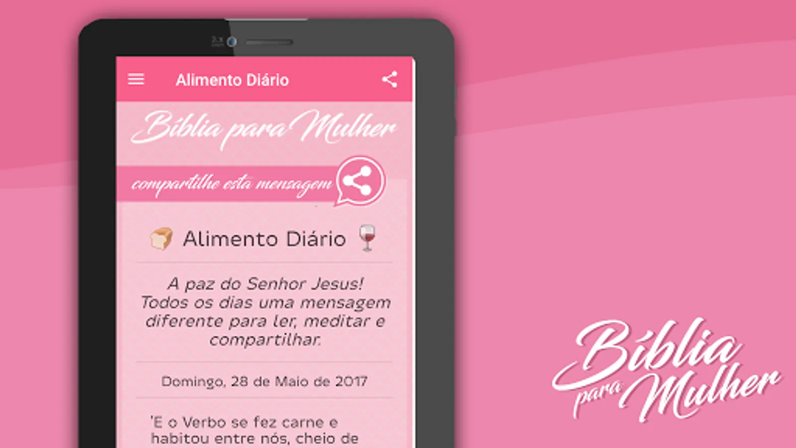 Daily Food, has daily messages based on biblical verses, which can be shared on your social networks;