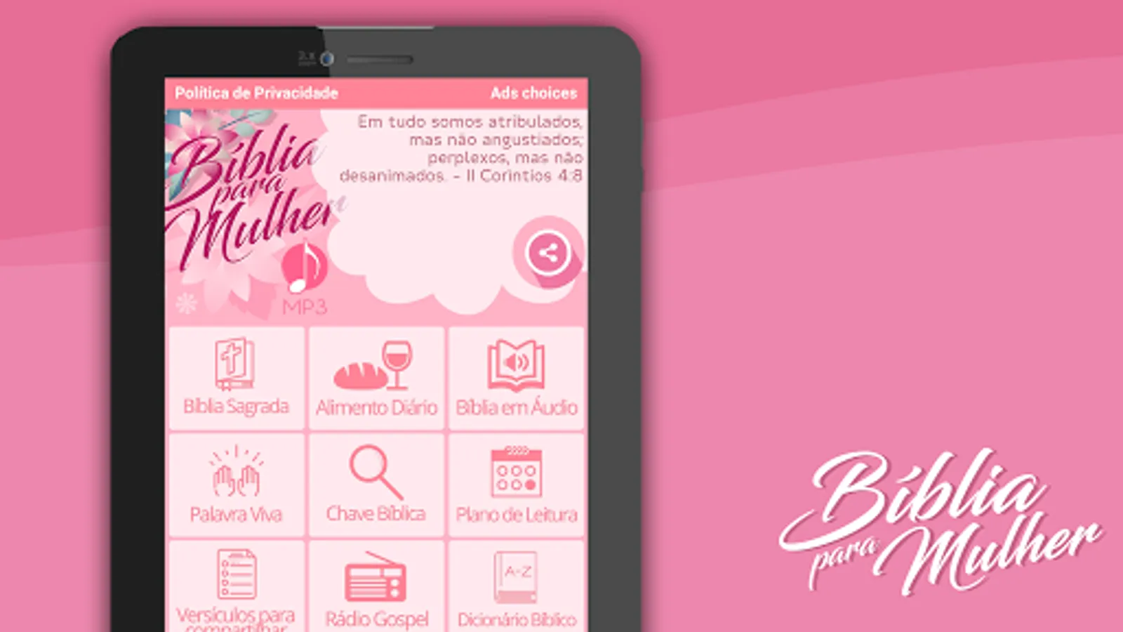 Finally, the Bible for Women MP3 is a spiritual channel, and its completeness aims to keep you more connected to the Lord Jesus!