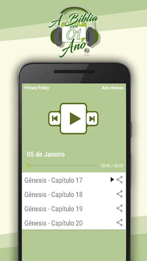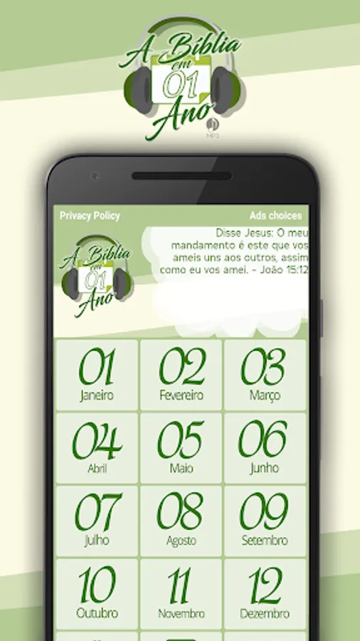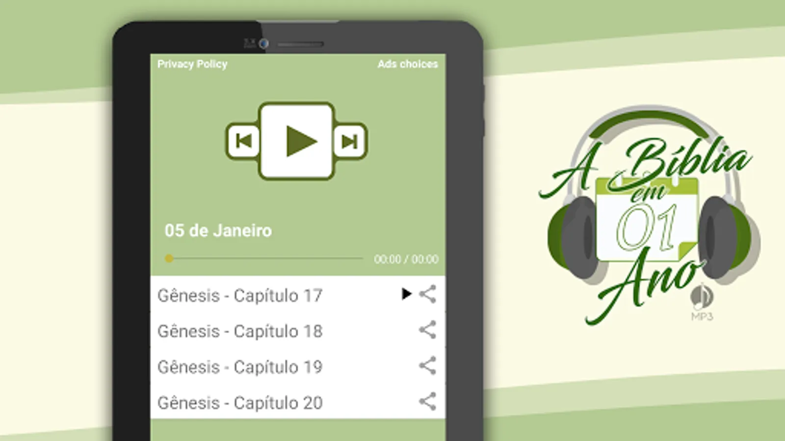 Friendly and intuitive interface: The clean and simple design makes navigating the application a pleasant experience, allowing you to focus on what really matters: the Word of God. The Holy Bible in 01 year MP3 is ideal for anyone looking for practicality and ease when listening to the Bible in audio.
