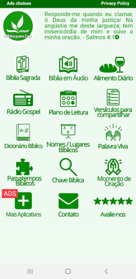 The Bible for Zap, with a focus on evangelization, guarantees the user an easy understanding of the Holy Scriptures, as it has the translation of João Ferreira de Almeida, with the Almeida Corrigida Fiel version (ACF – Edition 2011), thus promoting understanding, as the reading.