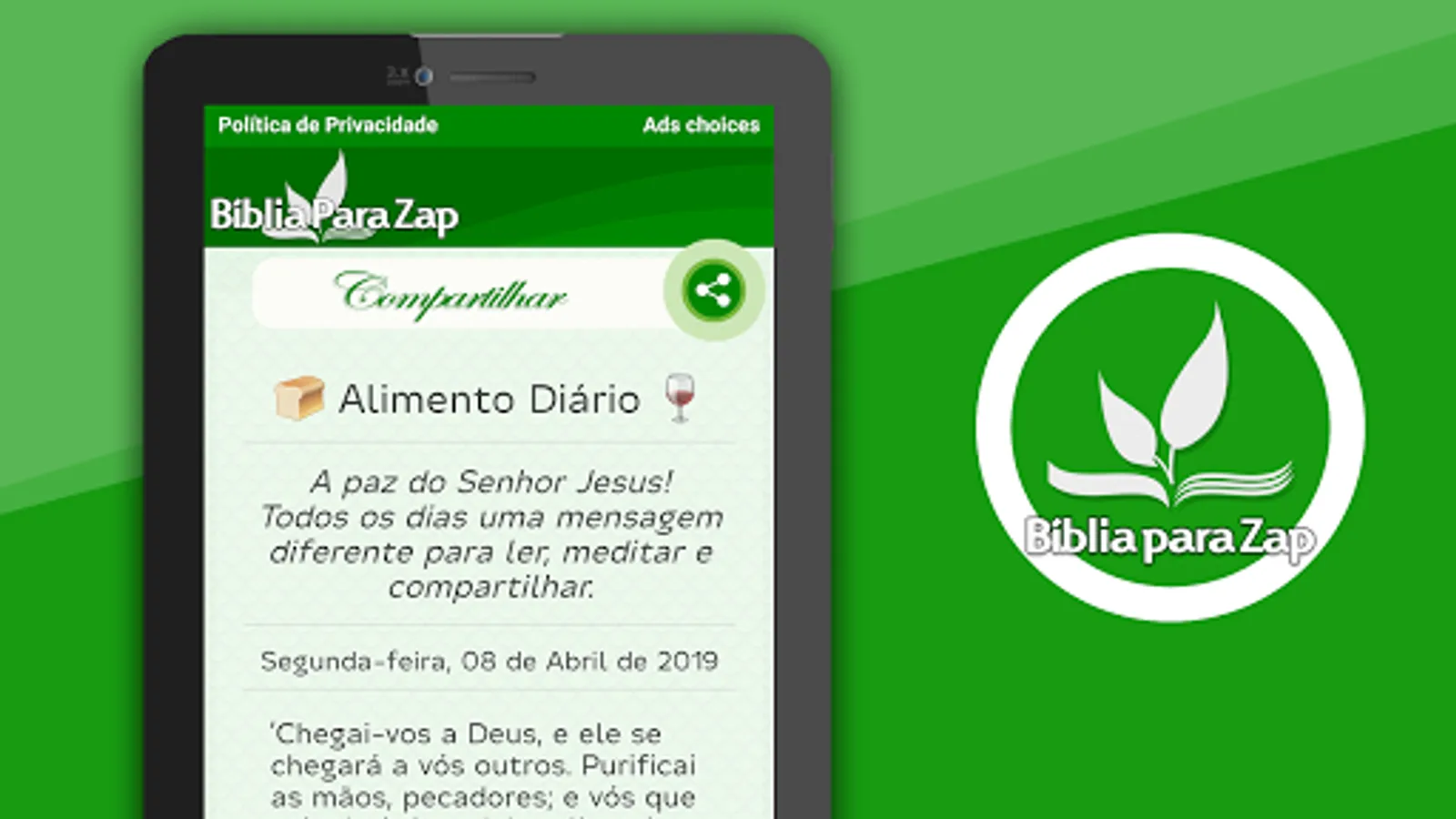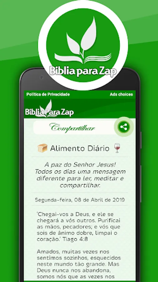 Daily food - Daily messages, based on biblical verses, can be shared on social networks.