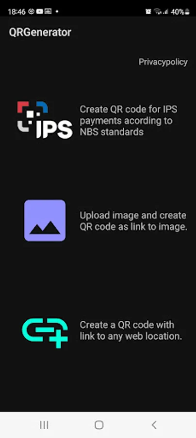 Generate QR codes with text, links, images, and QR codes for instant payments according to NBS specifications.