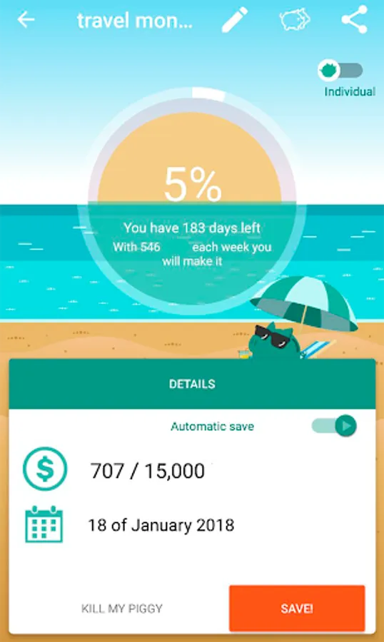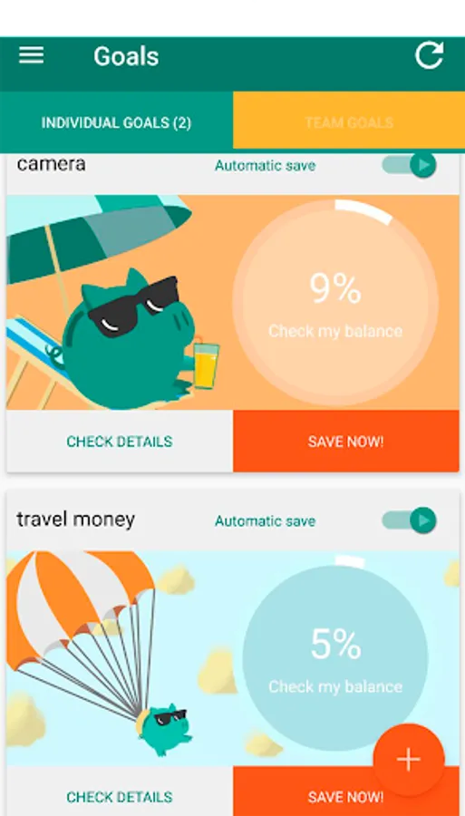 Start saving money in a fun and easy way, just by yourself or with friends.