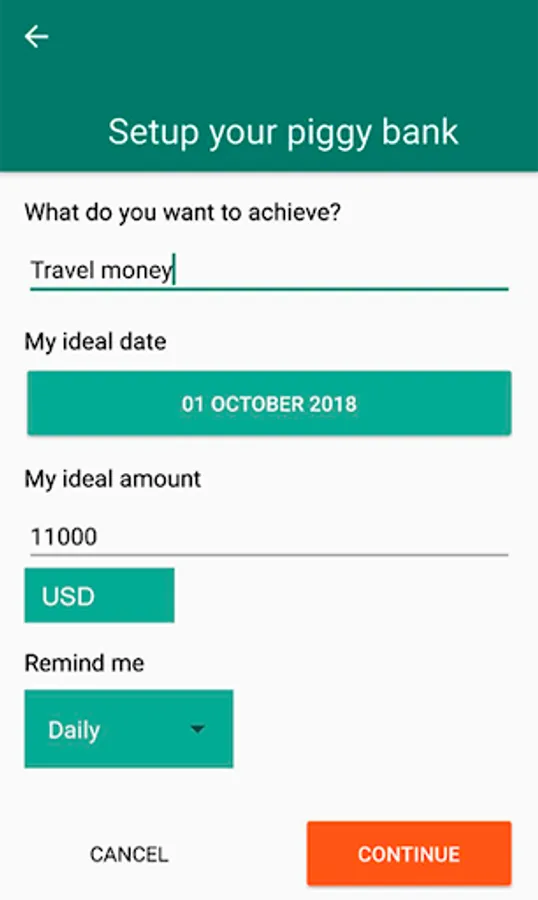 Set up a goal with an amount and a timeframe to reach it and link your debit card, after that we will take care of the rest, so you just enjoy to see your progress.