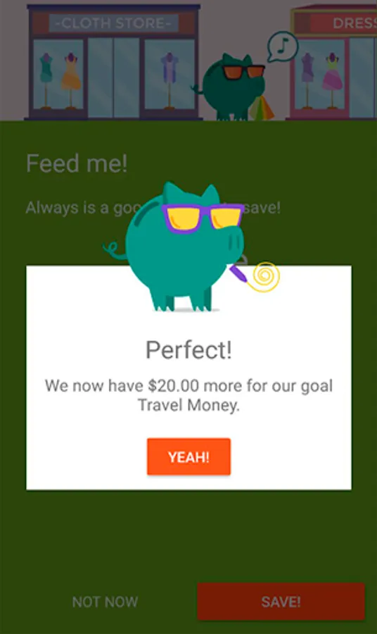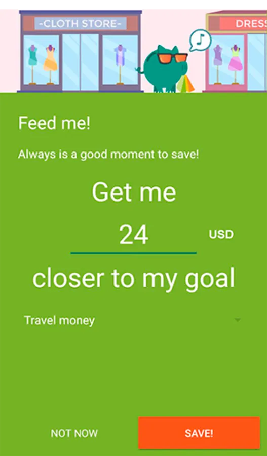 Food Reminders- Everyday or weekly your piggy will ask you to feed him, you can save with just a click.