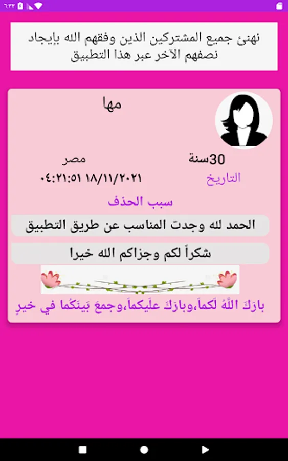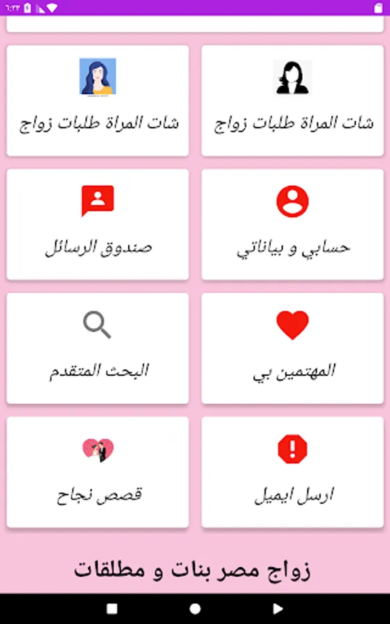 Marriage of girls and divorced women in Egypt is a free marriage application, and you can subscribe at a low cost so that we can always offer you the best, and the application is completely free for women with all its features, in order to encourage them to use the application, and to take responsibility for choosing their life partner in the most appropriate way for them.