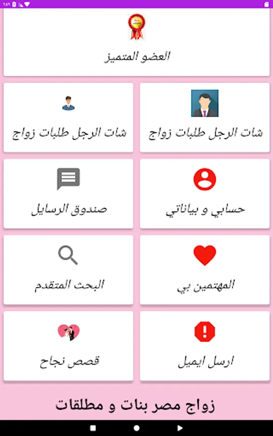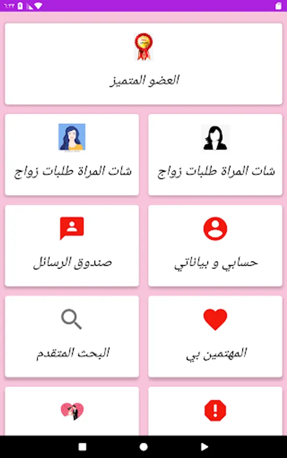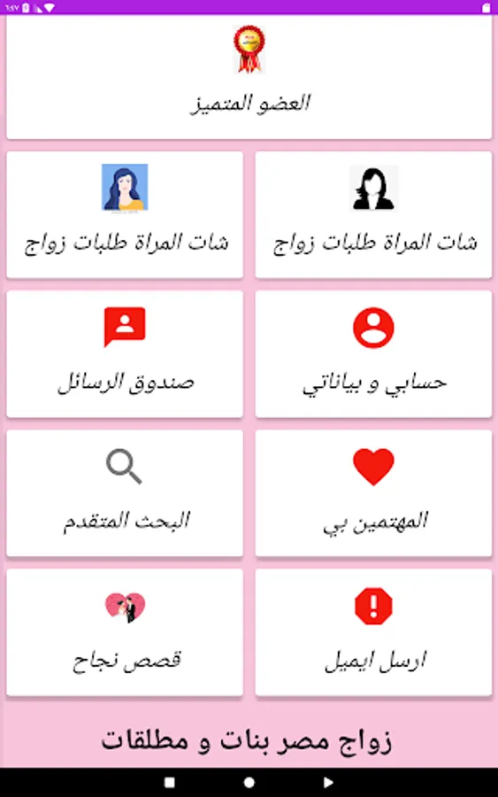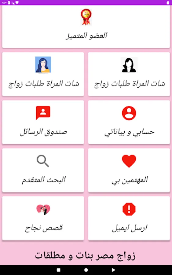 One of the important features of the application is that it includes all classes and layers of Arab societies and all jobs, which constitutes a greater field for every girl to find what she is looking for from a husband that suits her socially and is compatible with her dreams