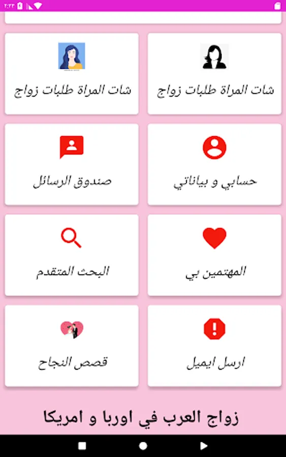 Arab marriage in Europe and America is a free marriage application, and you can subscribe at a low cost so that we can always offer you the best, and the application is completely free for women with all its features, in order to encourage them to use the application, and to take responsibility for choosing their life partner in the most appropriate way for them.