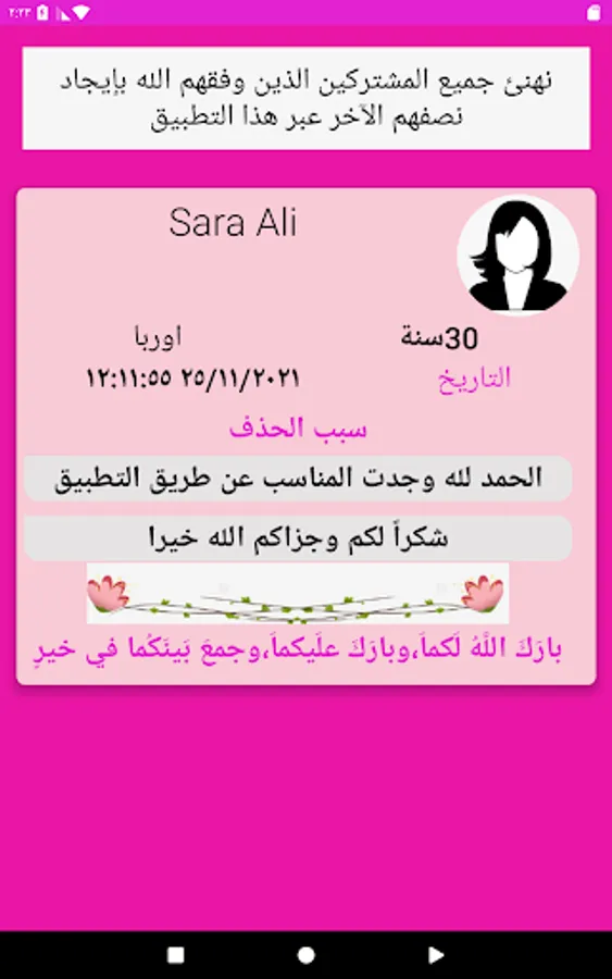 One of the important features of the application is that it includes all levels and layers of Arab societies and all jobs, which constitutes a greater field for every girl to find what she is looking for from a husband that suits her socially and is compatible with her dreams