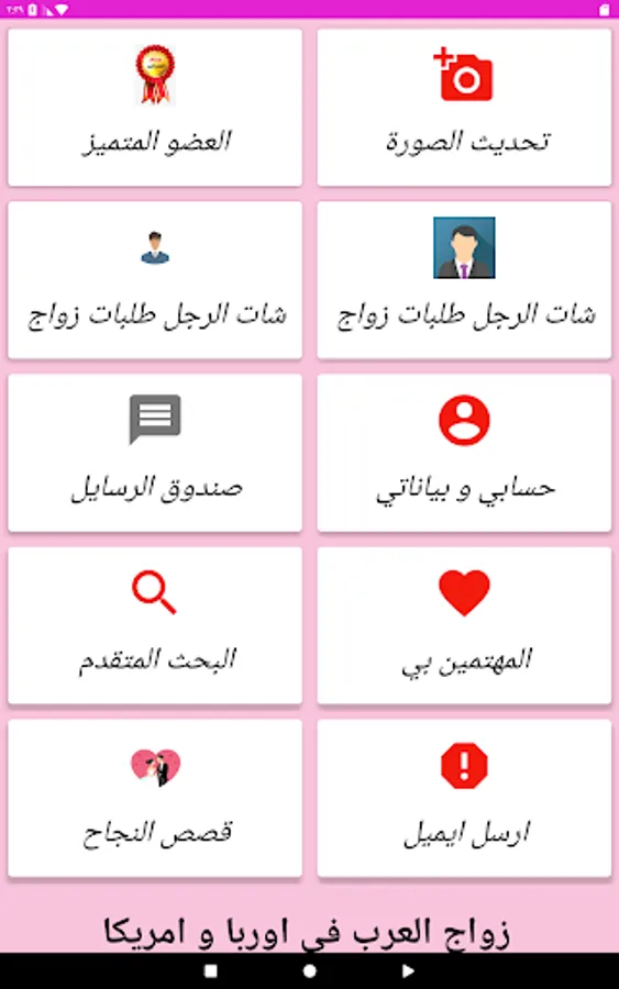 "Arab Marriage in Europe and America" is distinguished from other online marriage applications in that it takes care of the smallest details that care about your privacy and finds you the right person in a smart way to make its use a safe and reliable experience, and it is also based on compatibility, which means that its customized results agree between you and your potential future partner