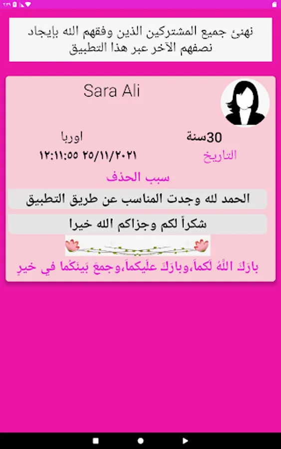 A safe marriage application, where experts in marital relations and programmers help the application's users of Muslim men and women in the Gulf and various Islamic countries to find a life partner