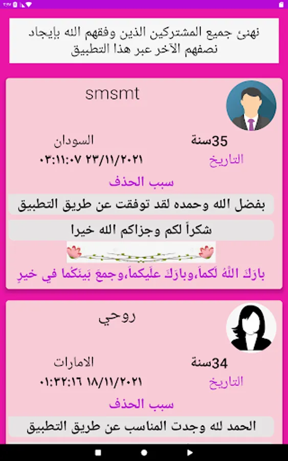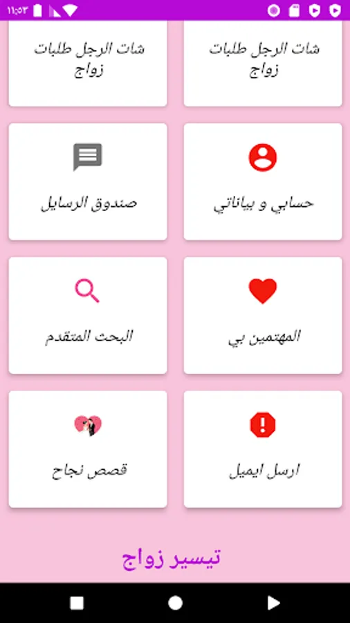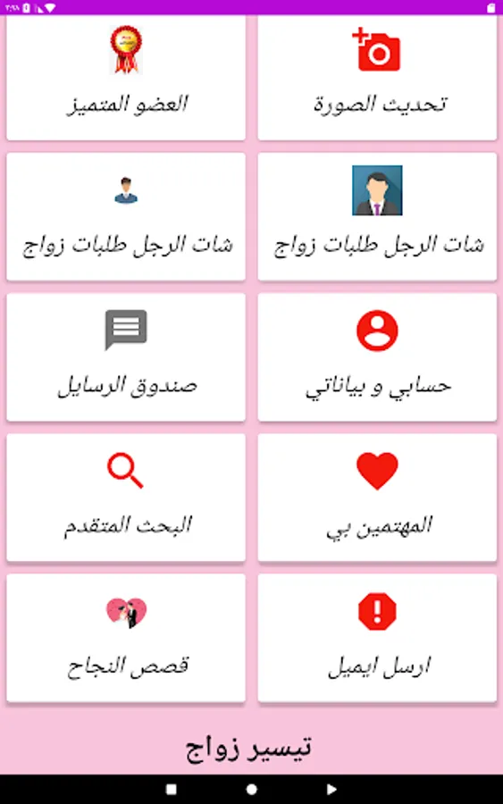 One of the important features of the application is that it includes all classes and layers of Arab societies and all jobs, which constitutes a greater field for every girl to find what she is looking for from a husband that suits her socially and is compatible with her dreams