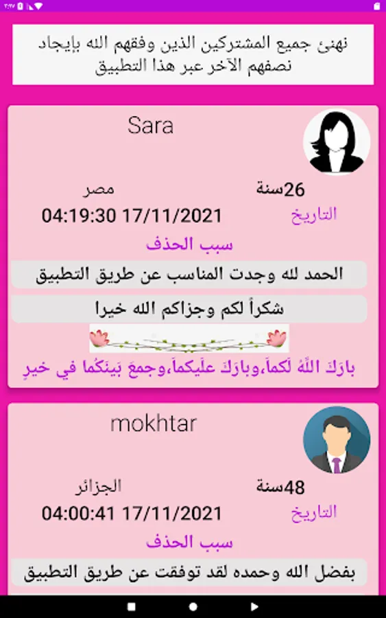 Facilitating the marriage of women and divorced women is a free marriage application, and you can subscribe at a low cost so that we can always offer you the best, and the application is completely free for women with all its features, in order to encourage them to use the application, and to take responsibility for choosing their life partner in the most appropriate way for them.