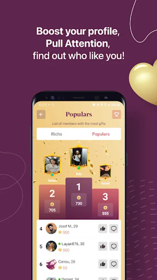 All you have to do is create a profile for yourself and talk about yourself. You can easily increase the number of flirts who want to match with you. Enjoy a deeper conversation with your partner. You can also access many features immediately. It is now very easy to attract attention from other people with the frames created specifically for you! Different people always attract attention, so if you wish, find friends, dating or true love faster and enjoy the endless chat!