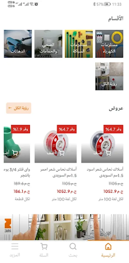 “Zawaya” offers a wide range of finishing materials such as electrical and plumbing supplies and decorative materials such as HDF, floor and wall tiles, paints, lighting accessories, even kitchen mixers & sinks, and sanitary products for bathrooms.