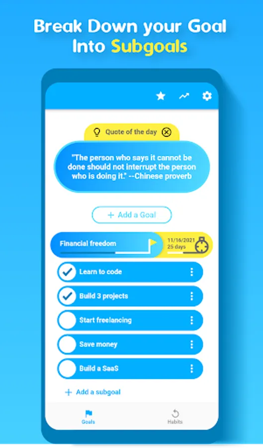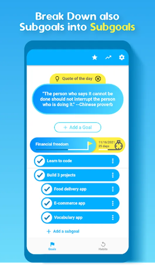 - Tracker: to track your daily tasks, habits, and to stay motivated.