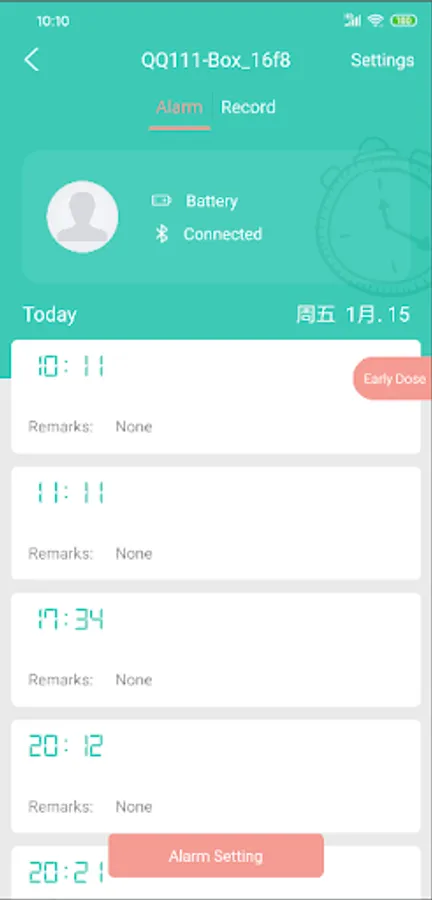 Healthcare software for automatic pill dispenser, including the function of alarm setup, device management, dosing history, etc