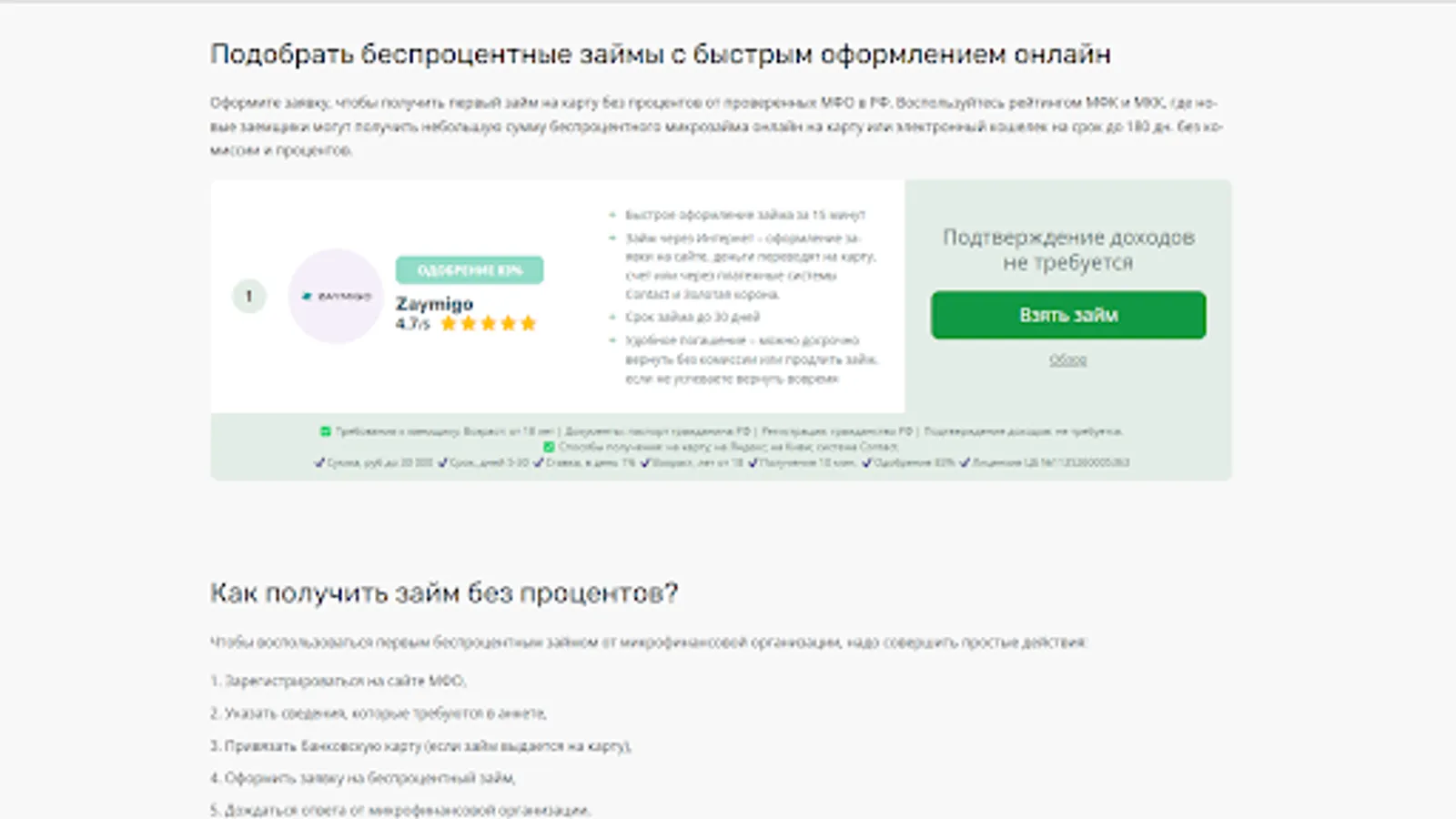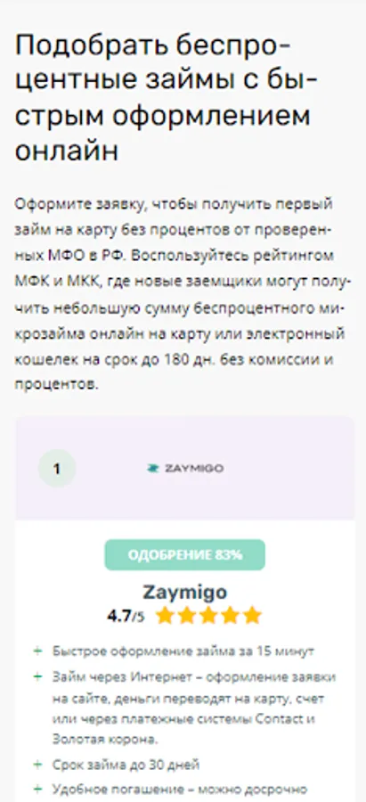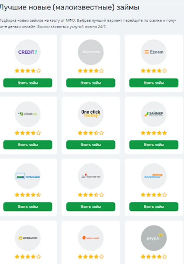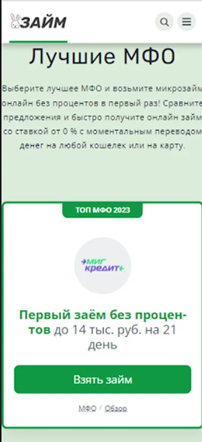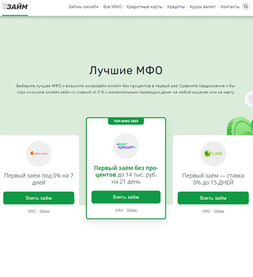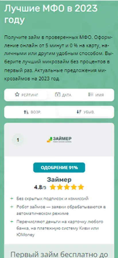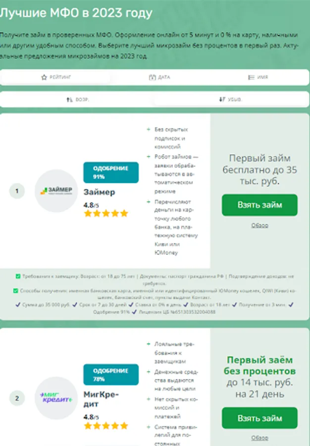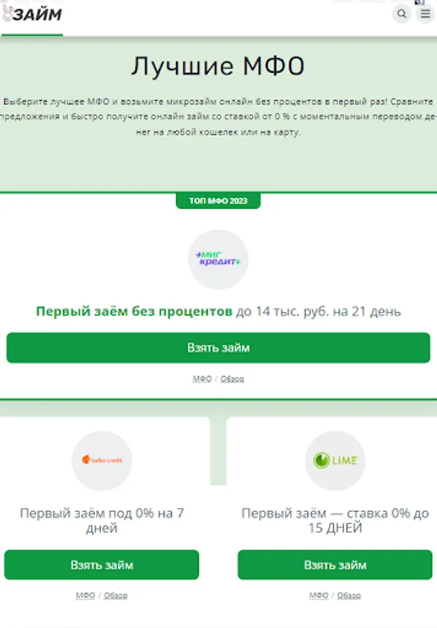Choose the best MFI and take a microloan online without interest for the first time! Compare offers and quickly get an online loan with money transfer to any wallet or card. Catalog of the best offers on zayazaym.ru