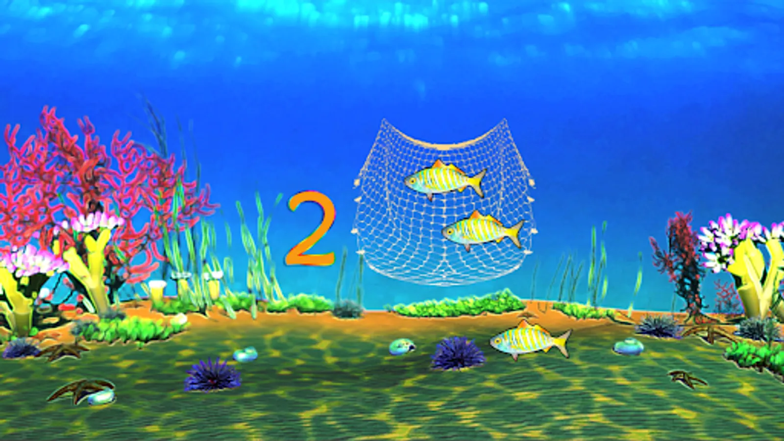 The third game: the " Fishing Game " , it consists of three stages, the goal of this game is to learn to count the fish appropriate to the size of fishing net. this game develops the kids ability to understand counting things instead of counting numbers as an applied form of the concept of counting, The stages consist of a net that can accommodate three fish, the other stage is a fishing net that can accommodate six fish, and the last stage can accommodate ten fish.