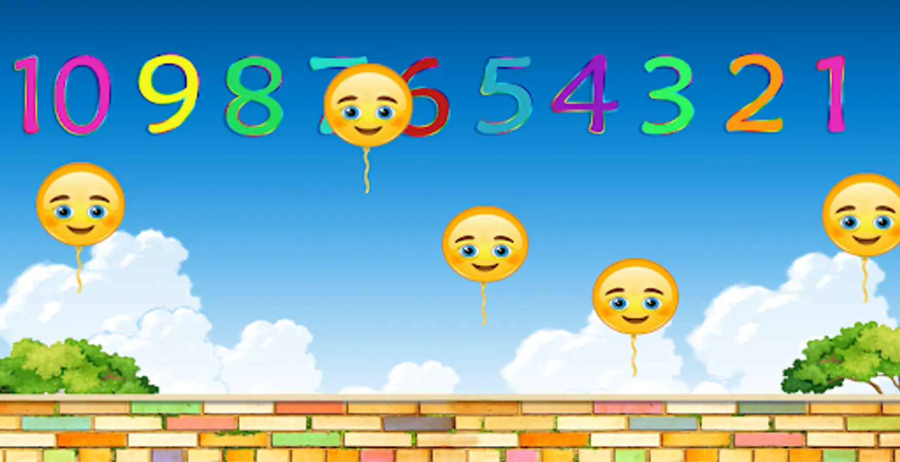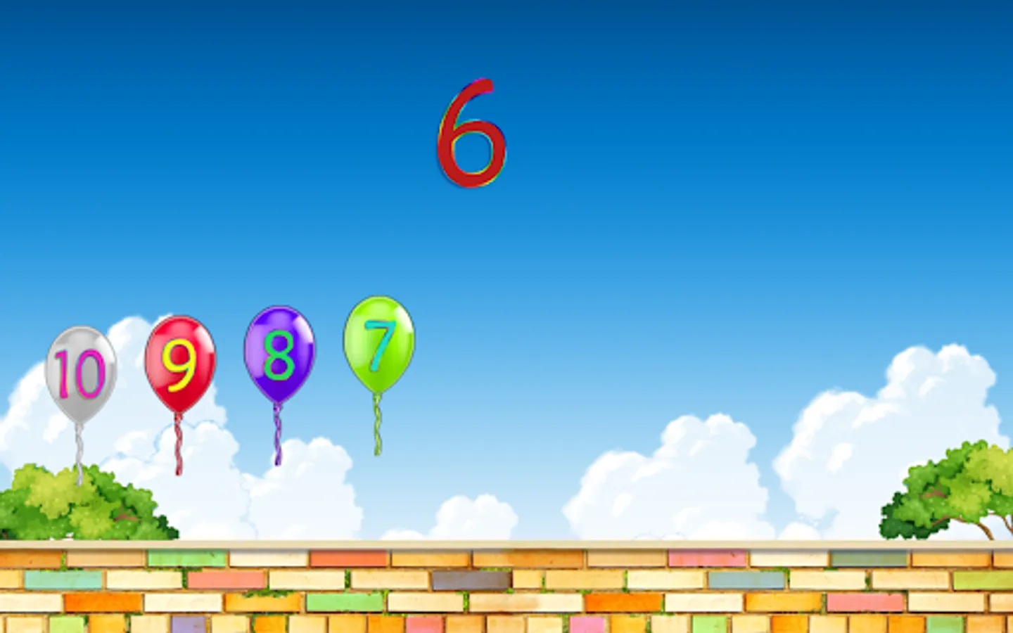 The second game: “pop balloons” and it consists of two stages, the first stage in which the number appears on a balloon and the child has to pop the balloon until the next number appears, and so on. From number one to number ten and the kid has to pop the balloons in ascending order.