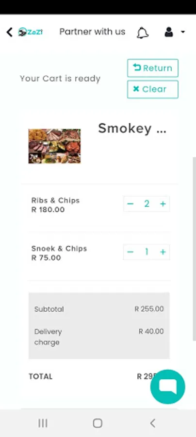 Details in the APP allows for the viewing of various PARTNERS loaded, to choose from and the distances they are. It includes delivery address details, total cost of order with easy payment options, estimated time of pick-up, estimated time of delivery, tracking of order in real time and the option to engage directly with the driver if the need arises.