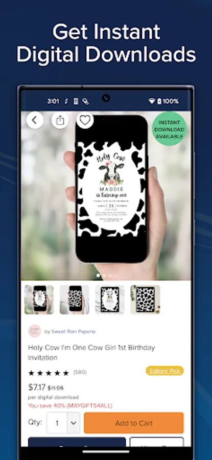 Whether you’re short on time to send invites, or choosing an eco-friendly option for save the dates, Instant Downloads offer a convenient way to share your moment in minutes. We have it covered, from birthdays to baby showers, surprise parties… even downloadable prints and art for your home.