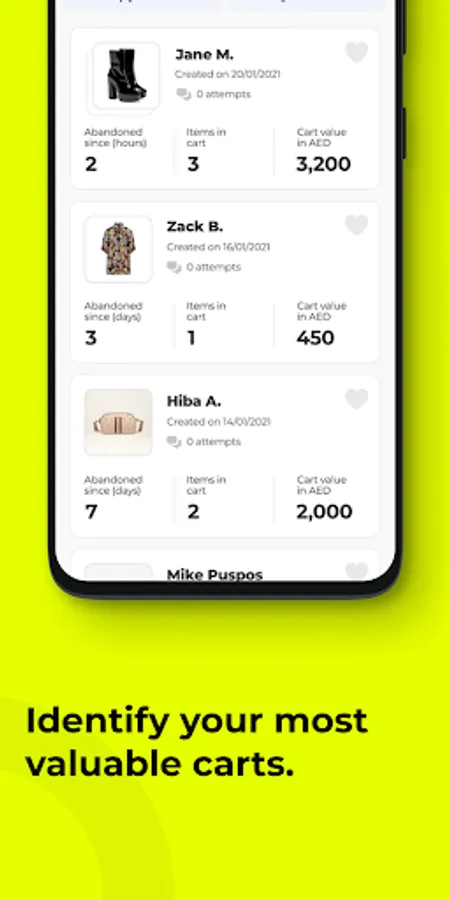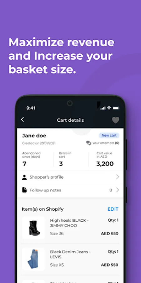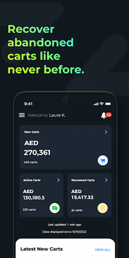 - Data visibility on your abandoned carts