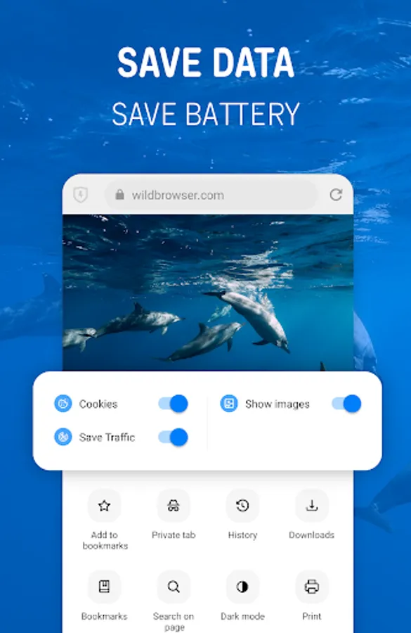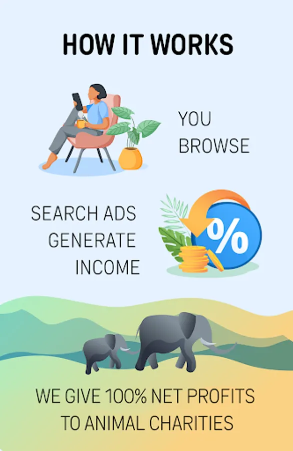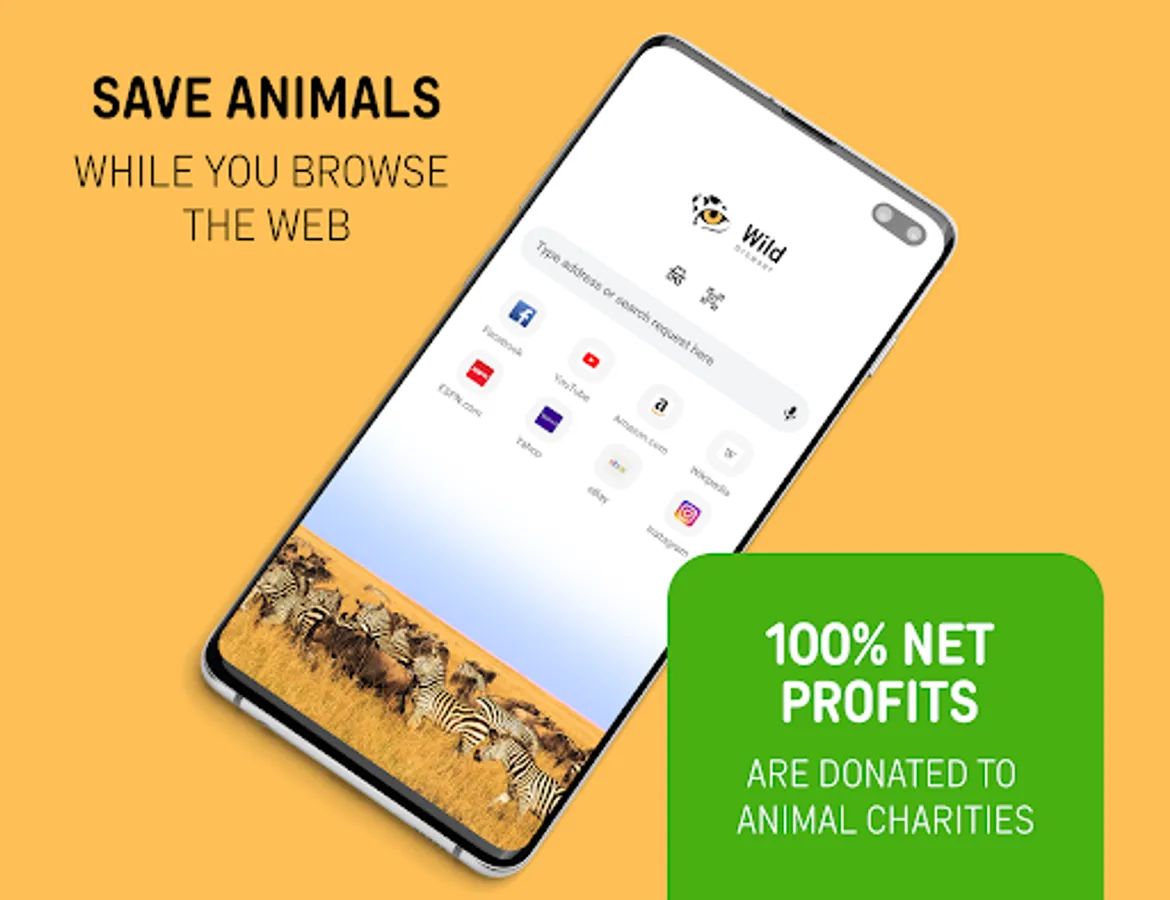 The idea of Wild Browser is very simple: everyone can contribute to animal welfare and rescue by choosing Wild Browser. All you have to do is simply surf the web. Work, browse the net, and communicate using our fast app while helping to secure a future for the wildlife and wild places we all love.
