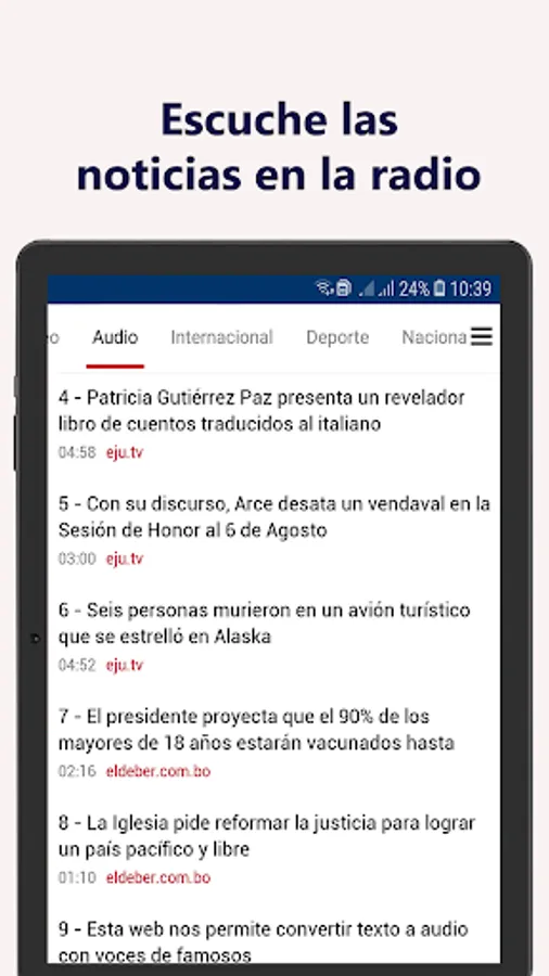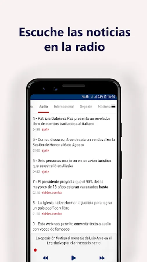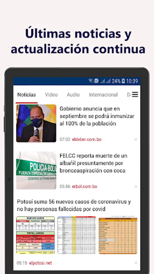 The best news about Bolivia to receive the latest news and the most current information about the world and the region, science and culture and sports, as well as current comments. With the Bolivian news mobile app, you can instantly follow the 24/7 live broadcast, breaking news from Bolivia and the world.