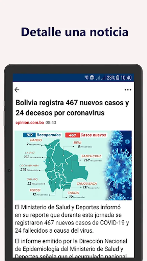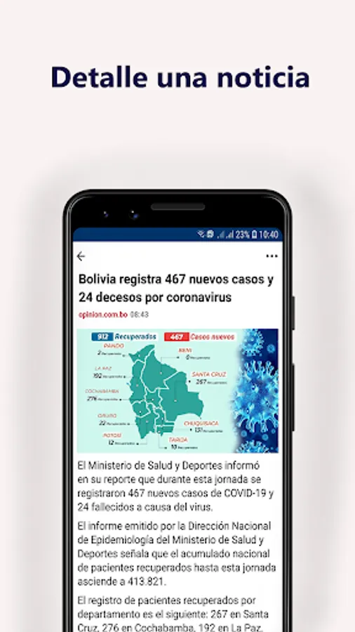 You can read the latest breaking news from Bolivia and the world in the most accurate way through the application. On the constantly updated and always active news page, you can stay informed about all the hot developments, especially the Agenda, Economy, Sports, Magazine and Life categories.
