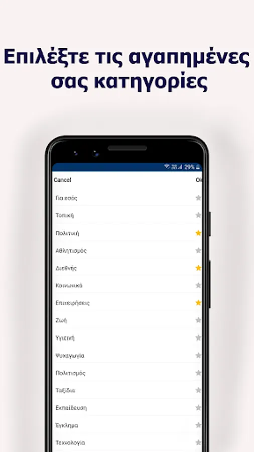 * Μπορείτε να αποθηκεύσετε τις ειδήσεις που θέλετε στα αγαπημένα αγγίζοντας τον αστερίσκο. Όταν θέλετε να λάβετε αυτές τις ειδήσεις αργότερα, μπορείτε να τις δείτε από την καρτέλα "αγαπημένα".
