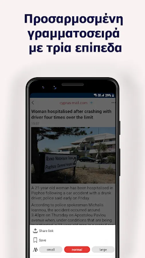 Μπορείτε να διαβάσετε τα τελευταία έκτακτα νέα από την Κύπρο και τον κόσμο με τον πιο ακριβή τρόπο μέσω της εφαρμογής. Στη συνεχώς ενημερωμένη και πάντα ενεργή σελίδα ειδήσεων, μπορείτε να ενημερώνεστε για όλες τις καυτές εξελίξεις, ιδιαίτερα τις κατηγορίες Ατζέντα, Οικονομία, Αθλητισμός, Περιοδικό και Ζωή.