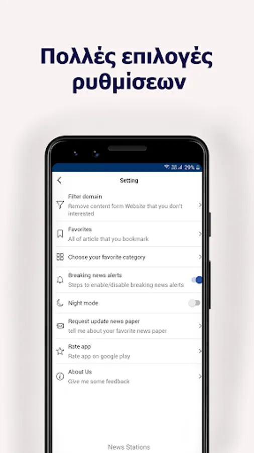 * Χάρη στη λειτουργία Push Notification, μπορείτε να λαμβάνετε έκτακτες ειδήσεις ως ειδοποίηση