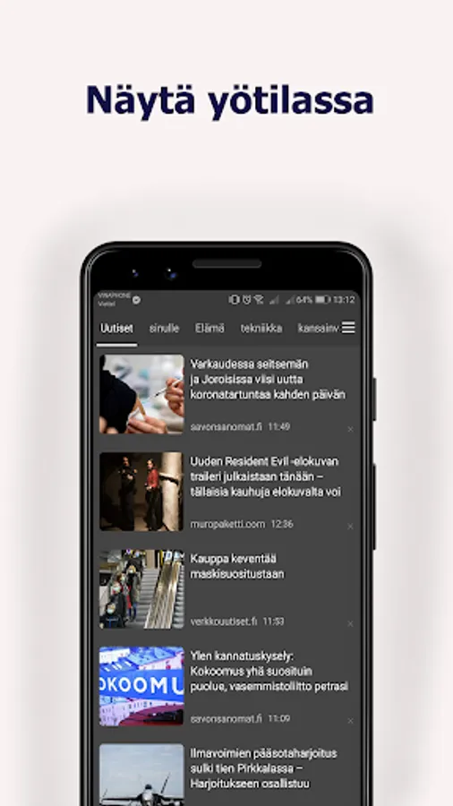* Direct news update from Finland's most read portals: iltalehti.fi, yle.fi, hs.fi, mtvuutiset.fi, seiska.fi, ...