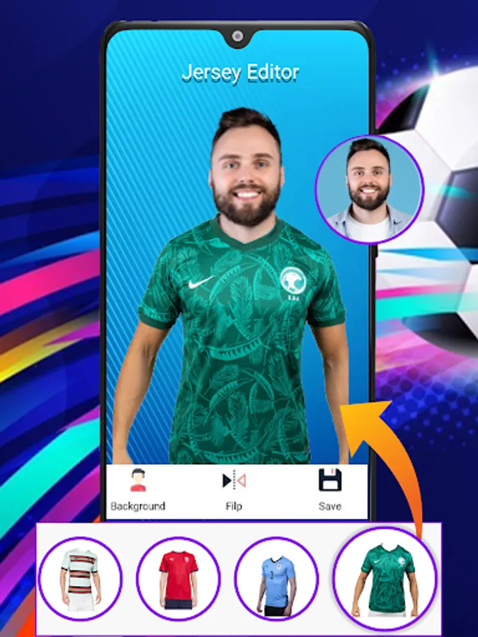 Football Jersey maker here's to give you solution for writing your name on shirt, edit your photo with football team jersey and change face on your favourite team kit.