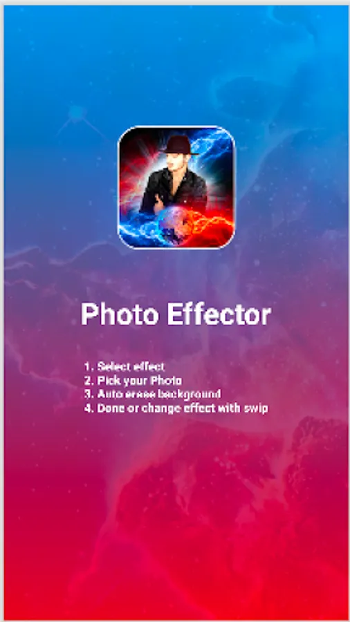 Effector have many photo effects to apply on your photos. Here you can apple fire photo effects, color photo effects, illustrators effects and many more charming effects. With few simple steps you can edit your photo like pro editor. First select effect from large range of photo effects from photo effector and choose your photo to apply effect and erase unwanted background by auto background eraser or manual background eraser than adjust your photo and save and you are done.
