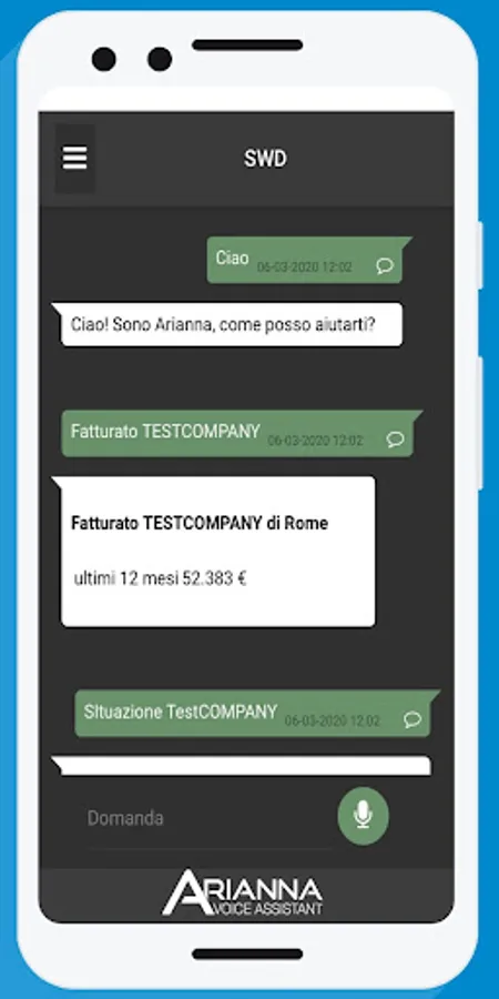 Arianna Voice is a vcale Business App assistant that answers questions in natural language with the data extracted from your company management, attendance and other internal systems.