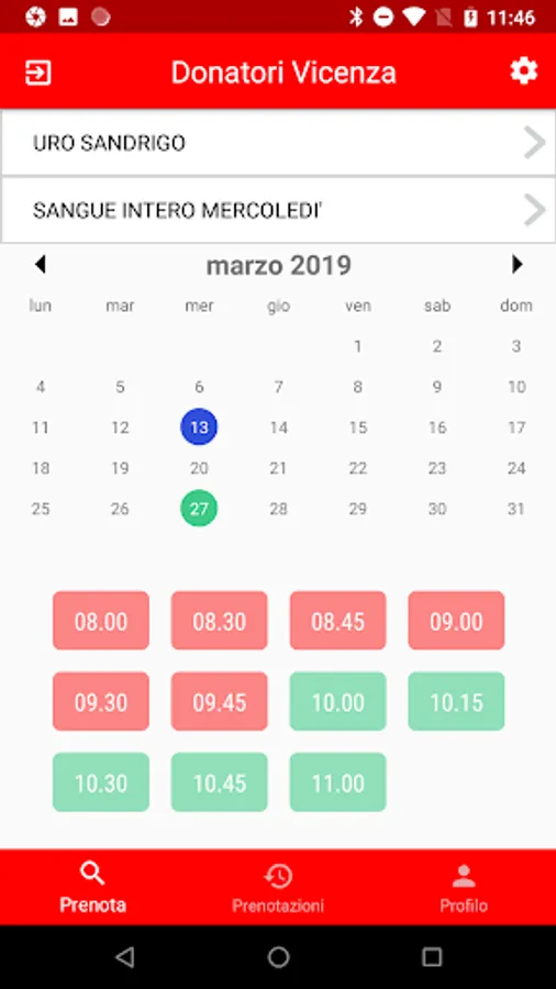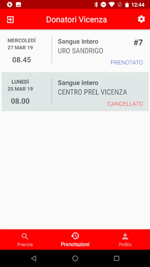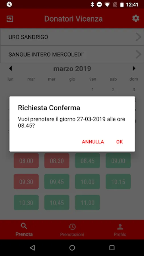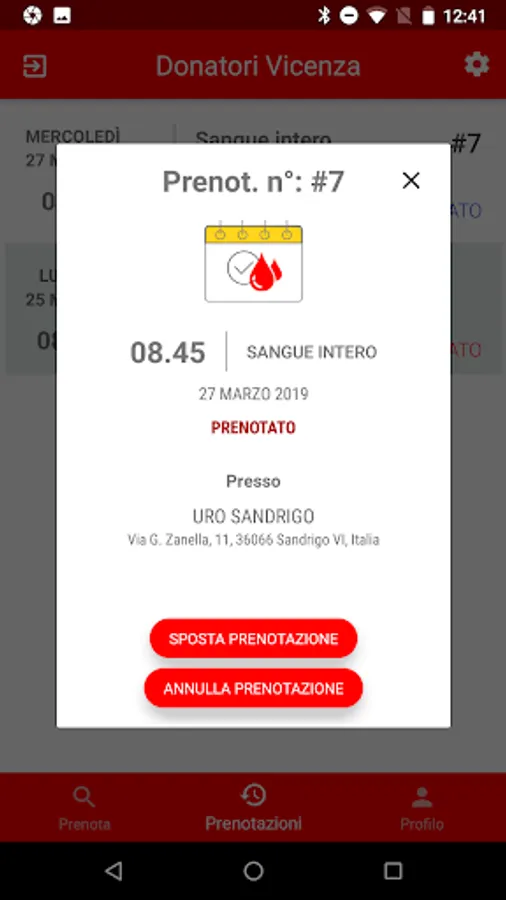 Application for booking blood and blood component donations at the blood collection centers of the Inter-company Department of Transfusion Medicine of Vicenza.