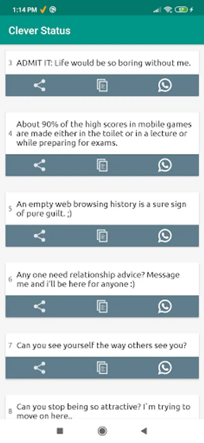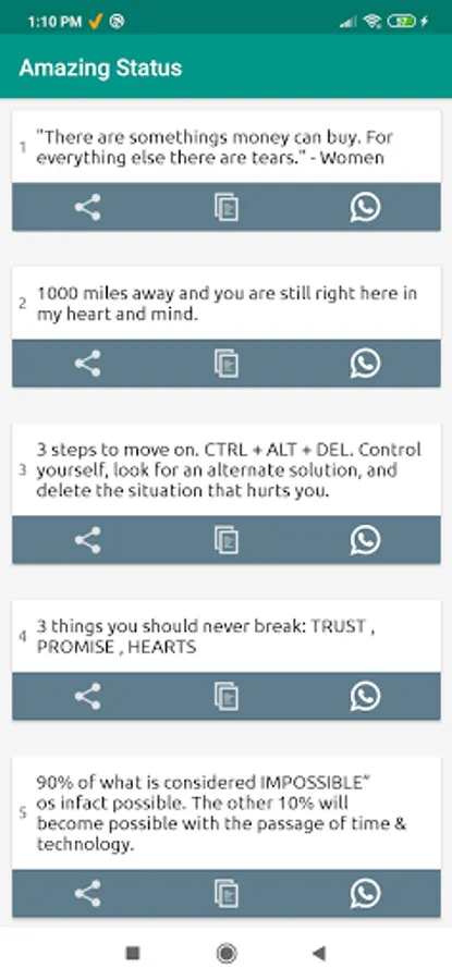 Share latest status/messages/quotes on whatsapp, facebook and other social media. Change status rapidly on whatsapp/facebook and make surprise to your friends
