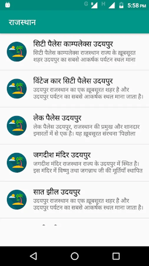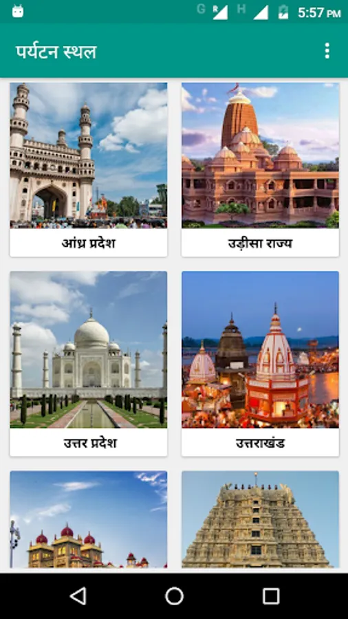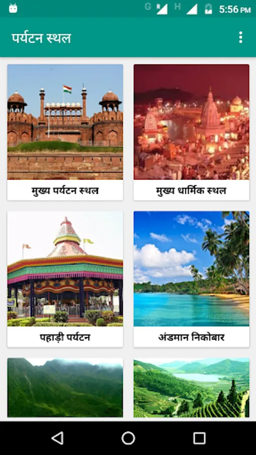 After downloading this application and post execution, you will be able to see the complete list of the top tourist destinations of India in Hindi.