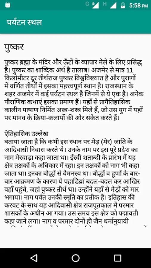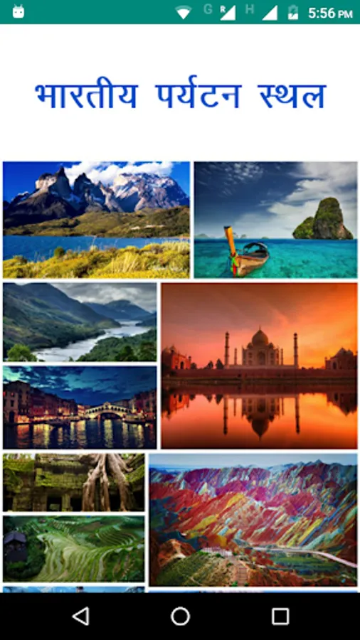 Tourist Places in India is a free app in Hindi that offers The Detailed History and Relavent information about most popular Indian places and tourism idea about spending your vacations and holidays in Hindi. App contains a number of brilliant photos and articles about Indian Tourism such as natural beauty geographic wonders local customs historic relics and sites, diverse cultures and arts of India.