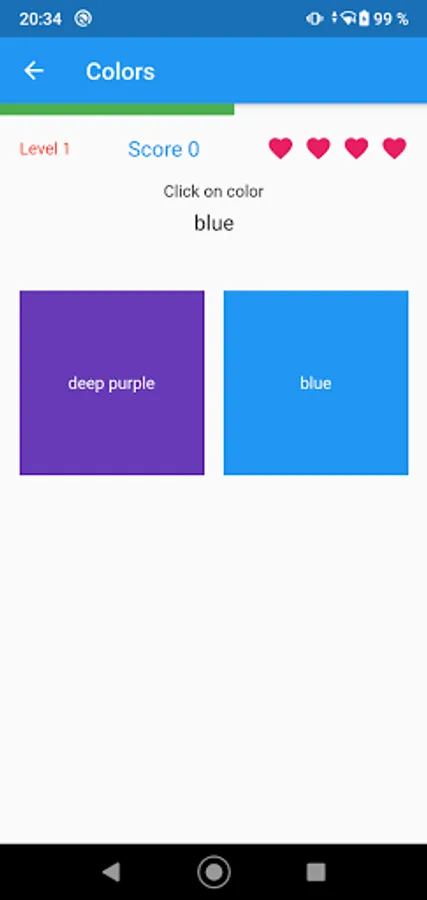 Practise your perception. Click on correct color! It will be simple just in the beginning. You will have less time and the game will eventually try to confuse you!