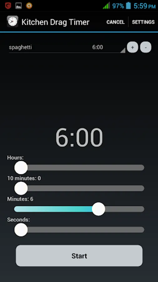 App Kitchen Drag Timer enables you to setup timer simply by dragging your finger. You can select separately hours, tens of minutes, minutes and second. This way setting up timer is fast and accurate.