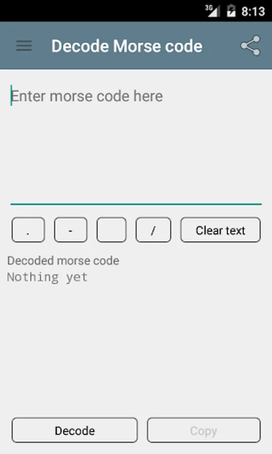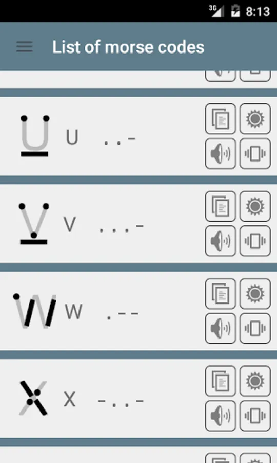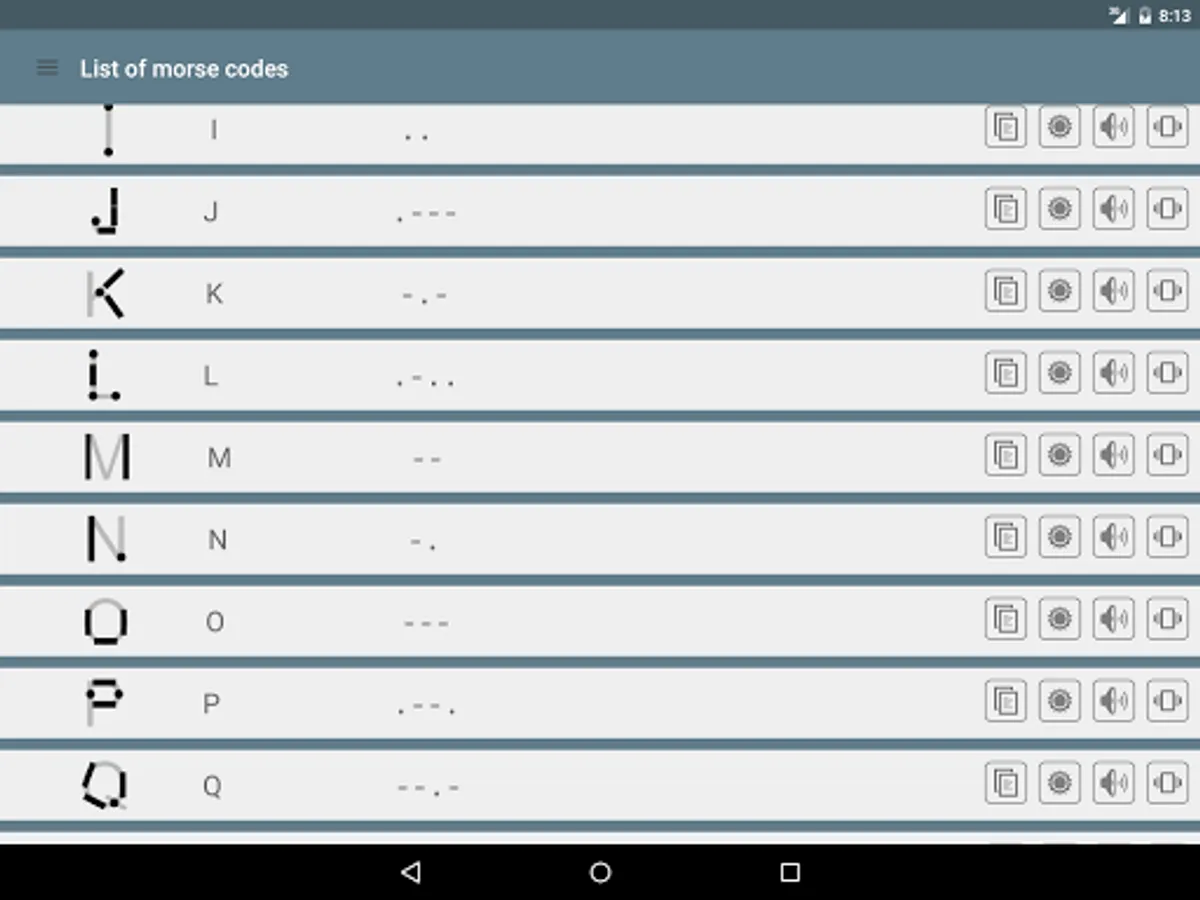 - Add morse code widgets to your homescreen (each widget with its own text and action [flash/beep/vibrate])