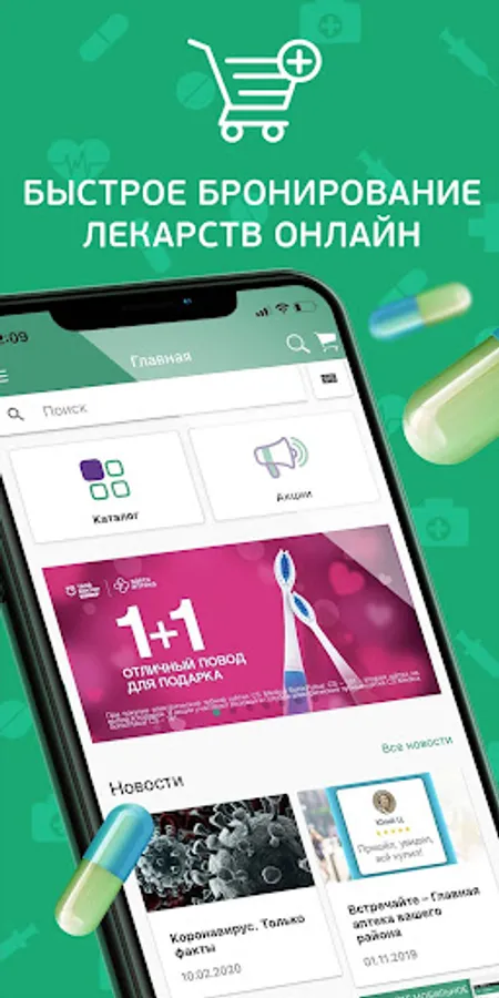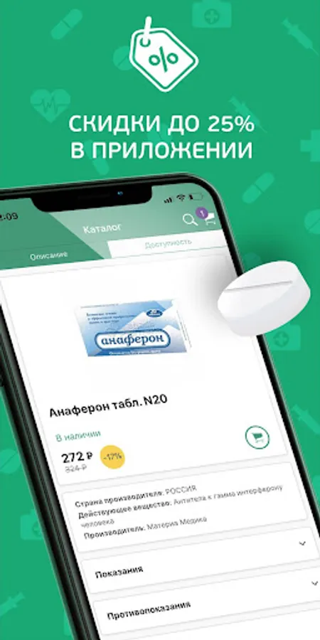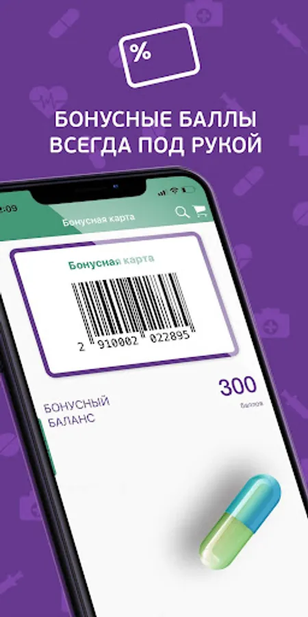 Cooperating with manufacturers of medicines, HERE PHARMACY regularly holds promotions and provides discounts on medicines and other pharmacy products. The bonus program allows you to accumulate bonuses for each purchase made - at the pharmacy network or in the application. With the accumulated points you can pay up to 90% of the cost of any product, including promotional ones! Up-to-date information about discounts, promotions and accumulated bonuses is always in the application.