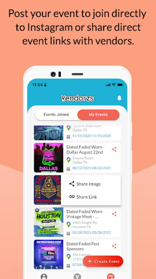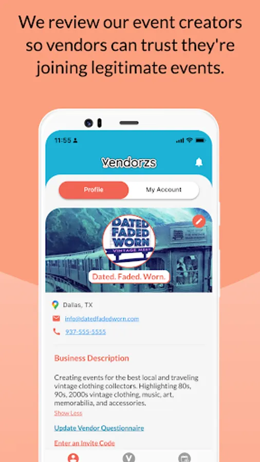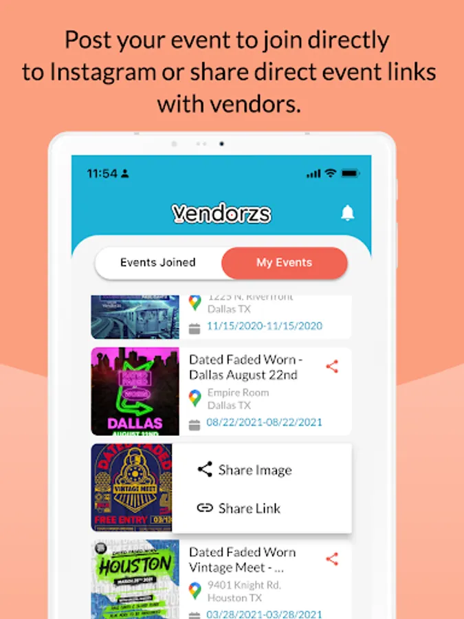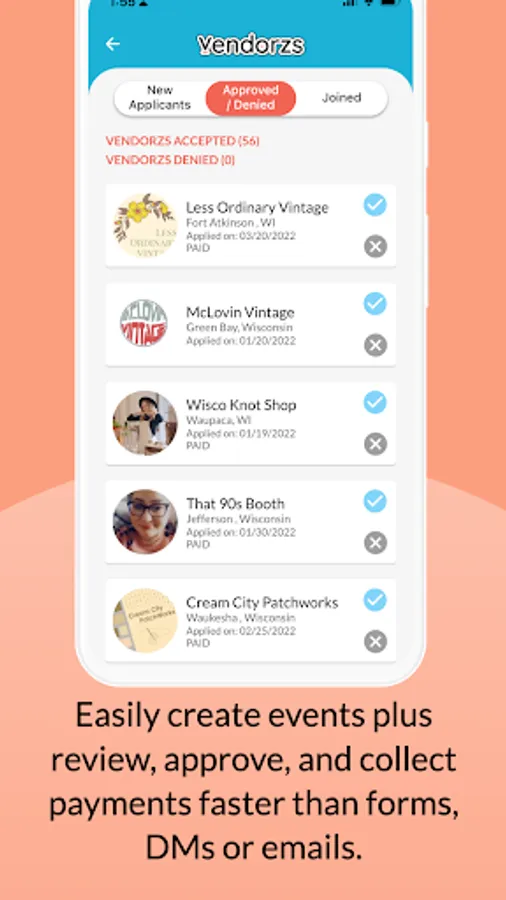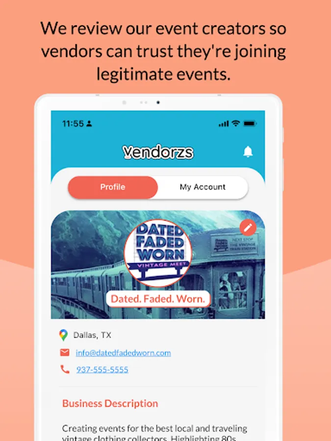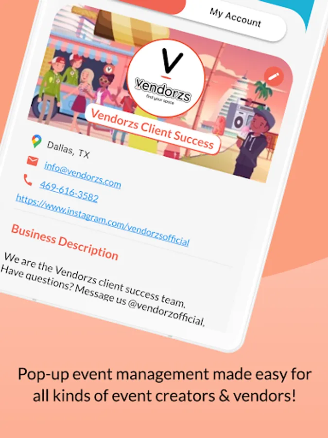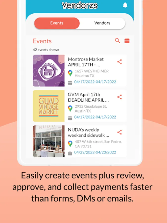 Vendorzs is the only app to offer an easy, convenient, and hassle-free way for event creators to create and manage events and for vendors to join and pay for space in those events. Big event? No problem. Lots of events? Easy peasy. Small event or vendor? Even better. Whether you’re a vintage clothing vendor or vegan foodie, Vendorzs supports small businesses so they never miss out on an opportunity to do what they love!