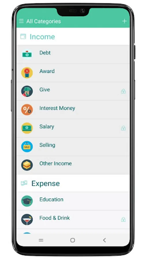 The app has some default categories in income/expense. You can also add/edit/delete/filter custom categories as and when you need.