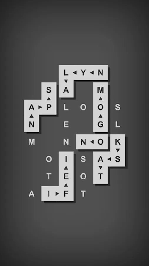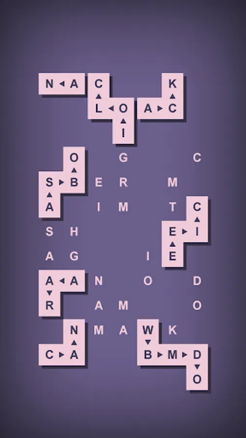 - Move blocks of letters and shift/rotate letters to form target words.