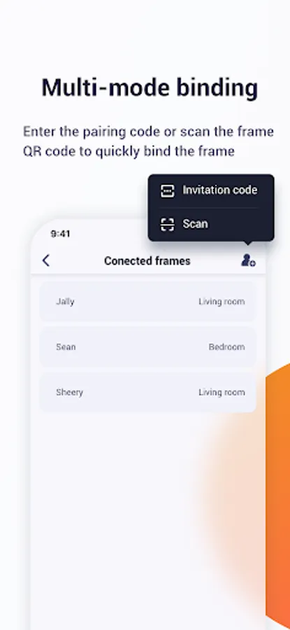 One account can be bound to multiple photo frames, and one photo frame can be bound to multiple accounts.