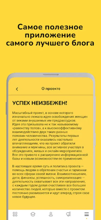 SUCCESS IS INEVITABLE! - a large-scale project, which was originally based on the idea of liberating women from centuries of prejudices instilled in them. This idea called not for the so-called "equality of the sexes", but for highly effective interaction between two such different halves of humanity. The results of the first years of activity turned out to be so impressive that men also paid attention to the project, more and more actively participating in discussions, live and online events. All this led to the expansion of the information base and new possibilities of its application.